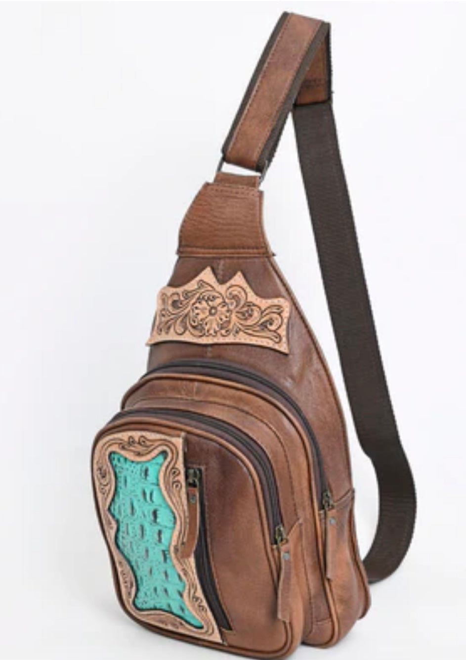 Tooled & Turquoise Sling Bag